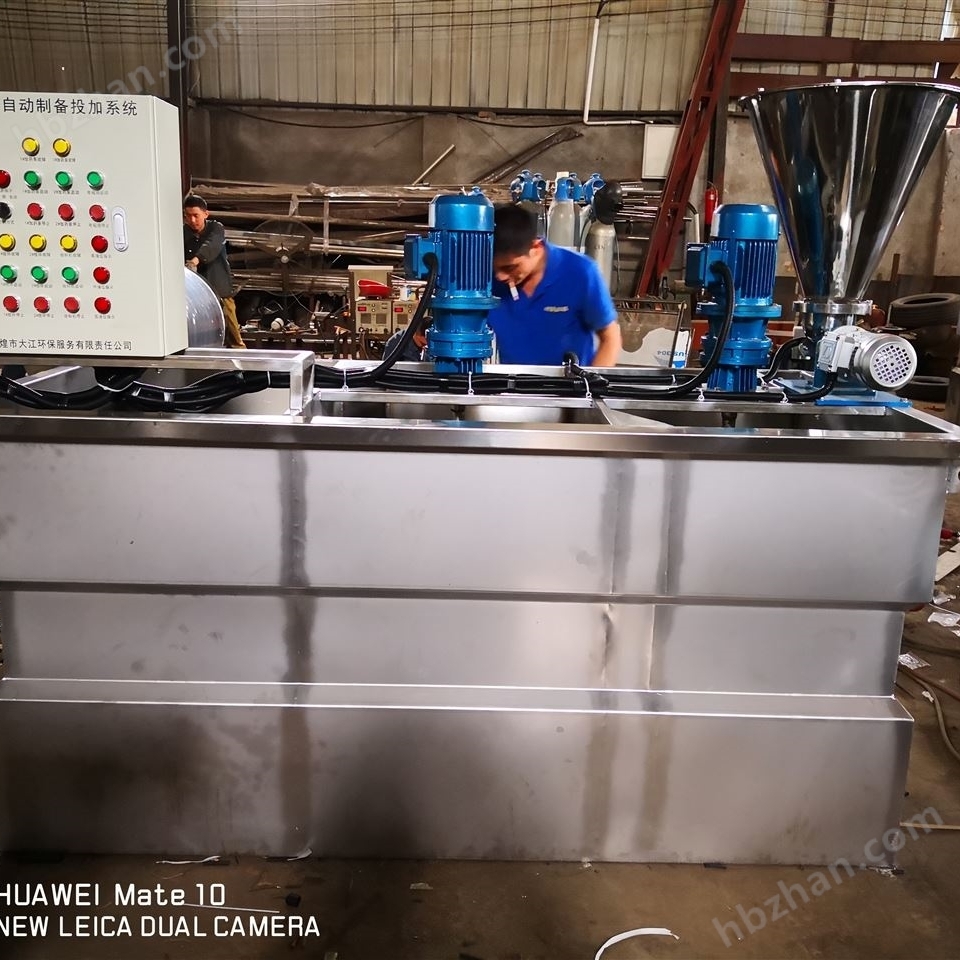 干粉自動投加裝置性能特點:高分子助凝劑采用粉劑投入調配,批量制備。成套供貨。(1)粉劑調配時,采用計量精確的變頻單螺旋給料機使粉劑與水比例投加,充分濕潤,避免集團成塊,并以精確的藥量進入配有攪拌器的PVC不銹鋼溶藥罐中,制成0.2-0.5%...